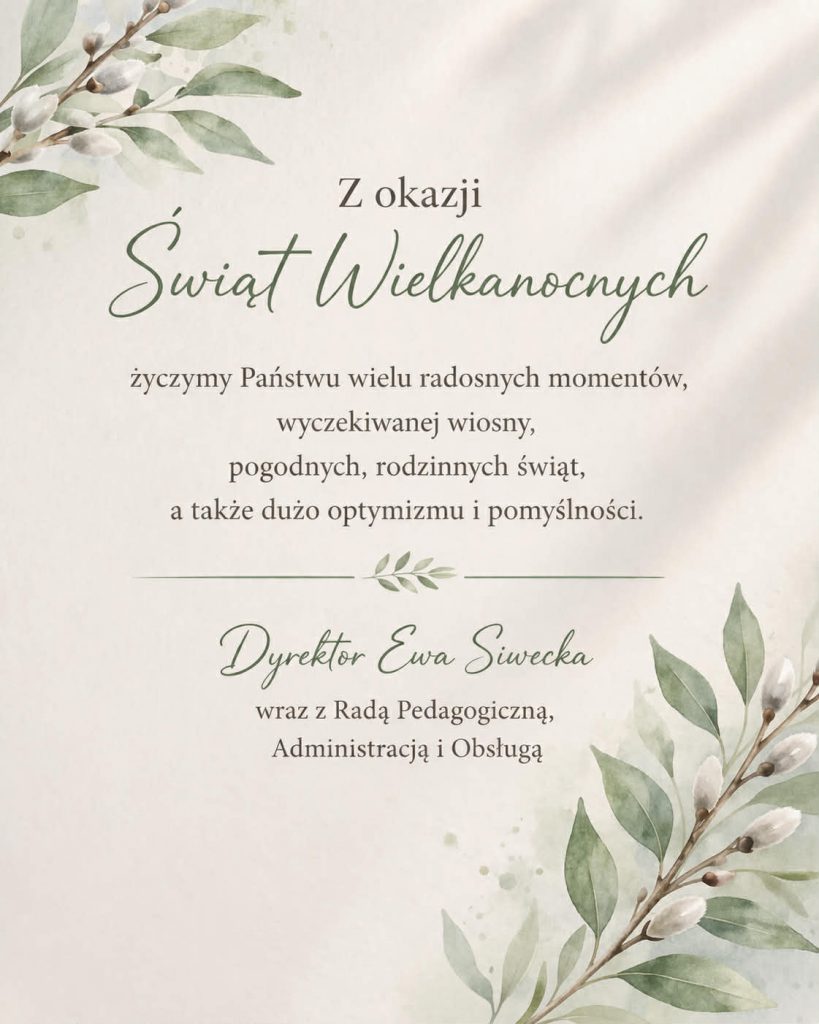 Z góry dziękuję za współpracę i pomoc w dotarciu z informacją do rodziców.